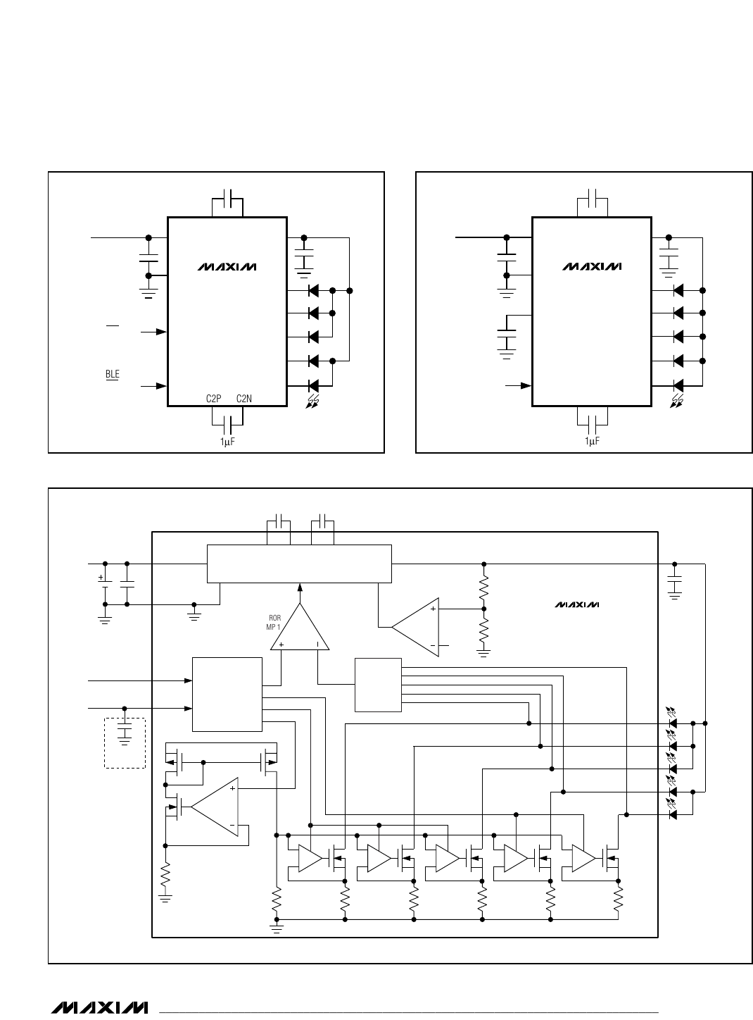 The MAX8630_ charge pump drives up to 5 white LEDs