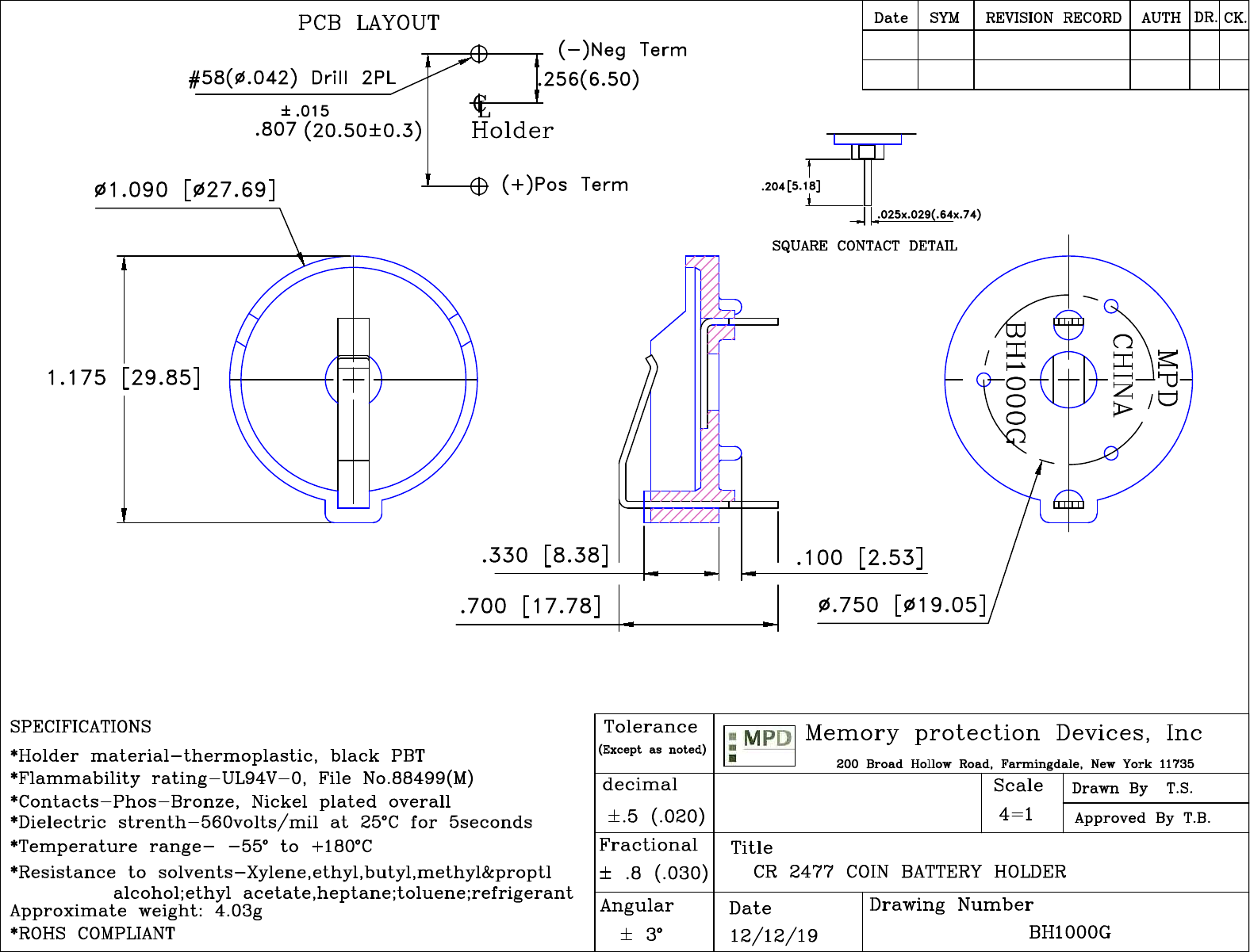 :I: .8 (.030) CR 2477 COIN BATTERY HOLDER