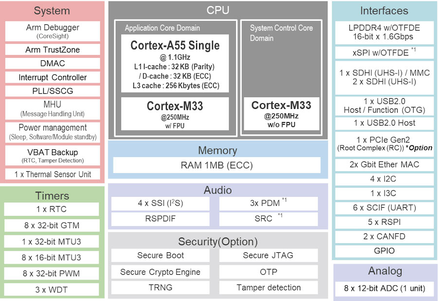 Die MPU RZ/G3S von Renesas enthält eine Cortex-A55-CPU (1,1 GHz), eine 16-bit-LPDDR4- oder DDR4-Schnittstelle, einen Niedrigleistungsmodus und mehrere Schnittstellen wie PCIe, CAN FD sowie einen 12-bit-Analog/Digital-Wandler und ist damit ideal für IoT-Edge-Anwendungen. Die RZ/G3S-MPU wurde mit getrennten Leistungsbereichen entwickelt, um den Stromverbrauch der MPU deutlich zu senken und die Implementierung von IoT-Gateway-Produkten mit Niedrigleistung zu ermöglichen. Die Unterstützung der Funktion zur Selbstauffrischung des DDR-Speichers in Kombination mit dem Power-Modus ermöglicht einen niedrigen Stromverbrauch im Bereitschaftsmodus und einen schnellen Rücklauf von Linux-Anwendungen.