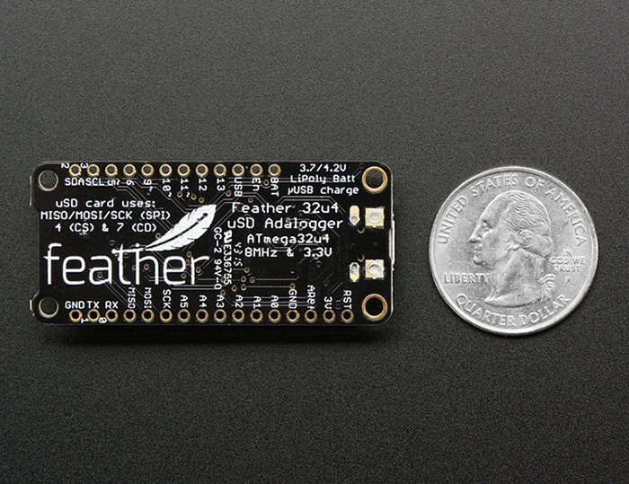 Courtesy of Adafruit - Feather is the new development board from Adafruit, and like it's namesake it is thin, light, and lets you fly! We designed Feather to be a new standard for portable microcontroller cores.