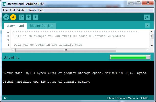 Note if you're using Ubuntu 15.04 (or perhaps other more recent Linux distributions) there is an issue with the modem manager service which causes the Bluefruit LE micro to be difficult to program. If you run into errors like "device or resource busy", "bad file descriptor", or "port is busy" when attempting to program then you are hitting this issue.
