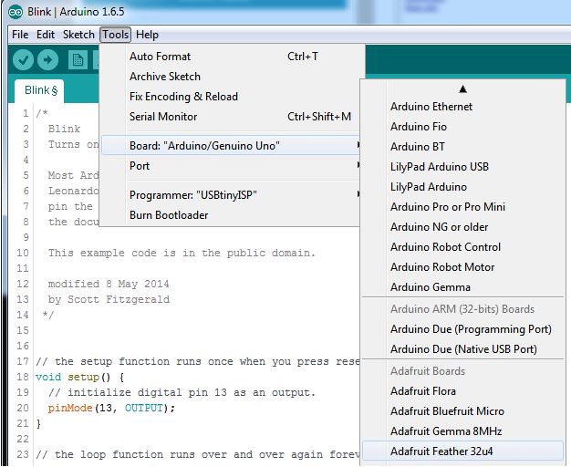 • Adafruit SAMD Boards - Includes support for Feather M0