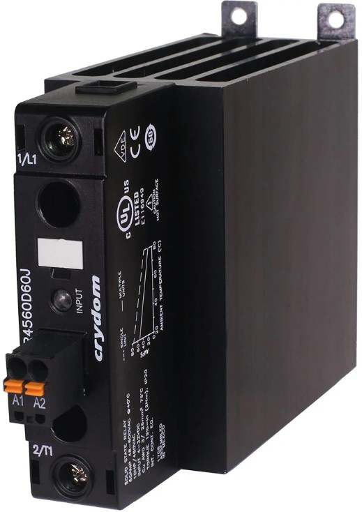Sensata Technologies – Crydom NOVA22 DR45 is a powerful and compact solid state relay in a DIN rail 45 mm wide package with an output rating of up to 60 A at +40°C. The DR45 offers mounting flexibility (panel or DIN rail) and convenient input connection options. Its capability to withstand high inrush currents and optional built-in overvoltage protection make it suitable for demanding heating, motion, and lighting applications.