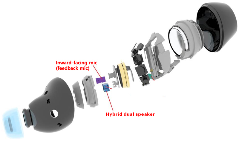 - Within the earbud are multiple SiSonic™ MEMS microphones to enable voice call algorithms for enhanced noise-canceling performance