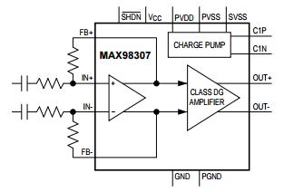Analog Devices' MAX98307 is a fully-differential, mono, class DG, multilevel power amplifiers with integrated inverting charge pumps offering highly-efficient, high-power audio solutions for portable applications