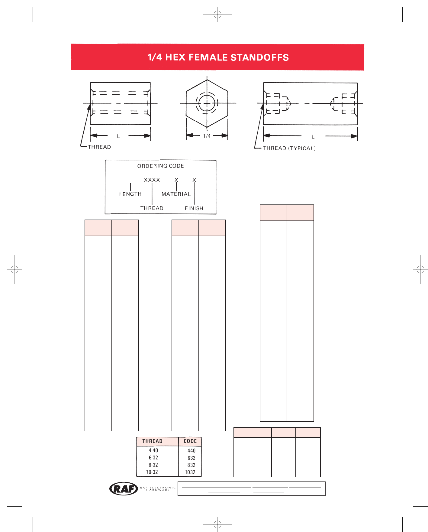 1/4 Hex Female Standoffs Datasheet by RAF Electronic Hardware
