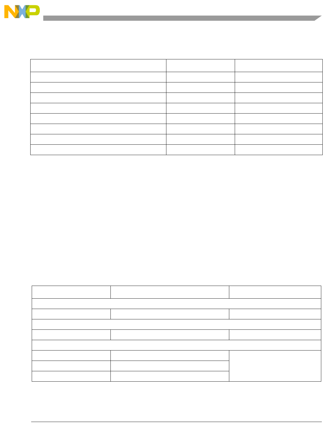 • Remove Part number tables from Hardware spec. The part numbers are available on Freescale