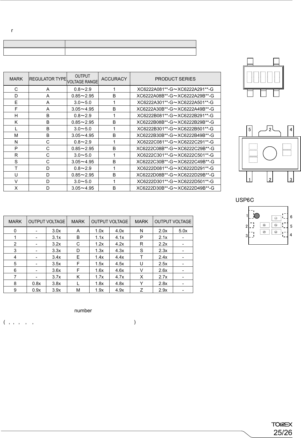 N C 0.8~2.9 1 XC6222C081**-G~XC6222C291**-G