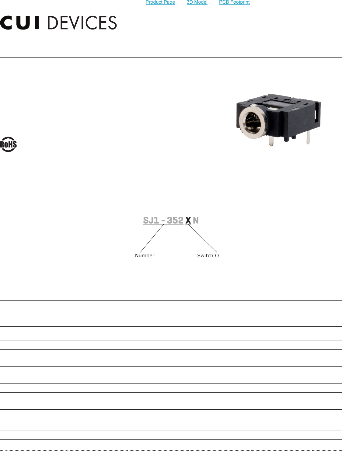 date 10/09/2019 │ page 2 of 3CUI Devices │ SERIES: SJ1-352XN │ DESCRIPTION: 3.5 MM AUDIO JACK