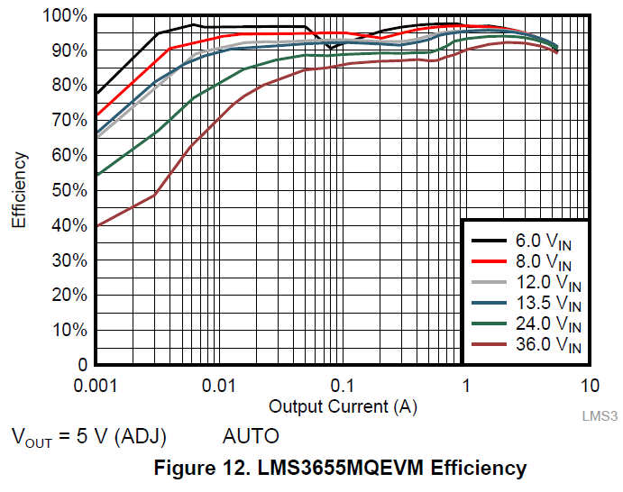 Seamless transition between PWM and PFM operation, along with a low quiescent current, ensures high efficiency at all loads. The Texas Instruments LMS3655xQEVM and LMS3635xQEVM help to evaluate the operation and performance of the LMS3655-Q1, LMS3655, and LMS3635-Q1.
