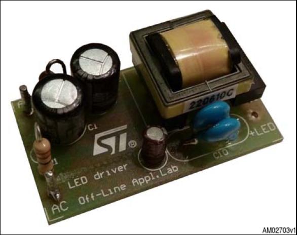 The EVALHVLED805 is a demonstration board equipped with the new HVLED805 PWM current mode LED driver and is designed for European mains. It can control, with very good accuracy, from 1 to 3 LEDs having a nominal current of 350mA.