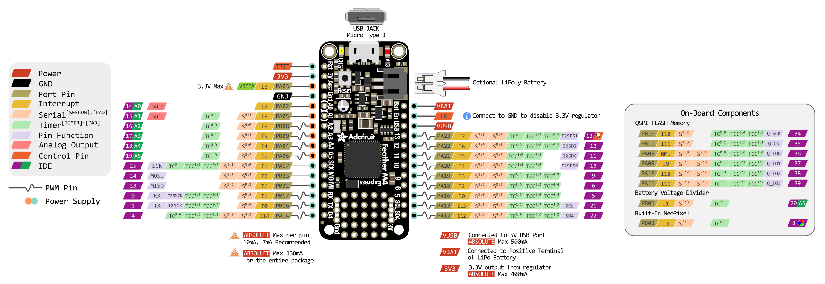 Battery Charger, LiPo CRC Computation Unit Cryptographic Acceleration Unit Feather Compatible Power/Enable Pin Timers True Random Number Generator Watch Dog Timers |